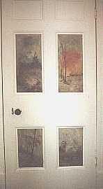 Two of our cedar doors (in the dining and breakfast rooms) have one side painted, having paintings on four panels.
